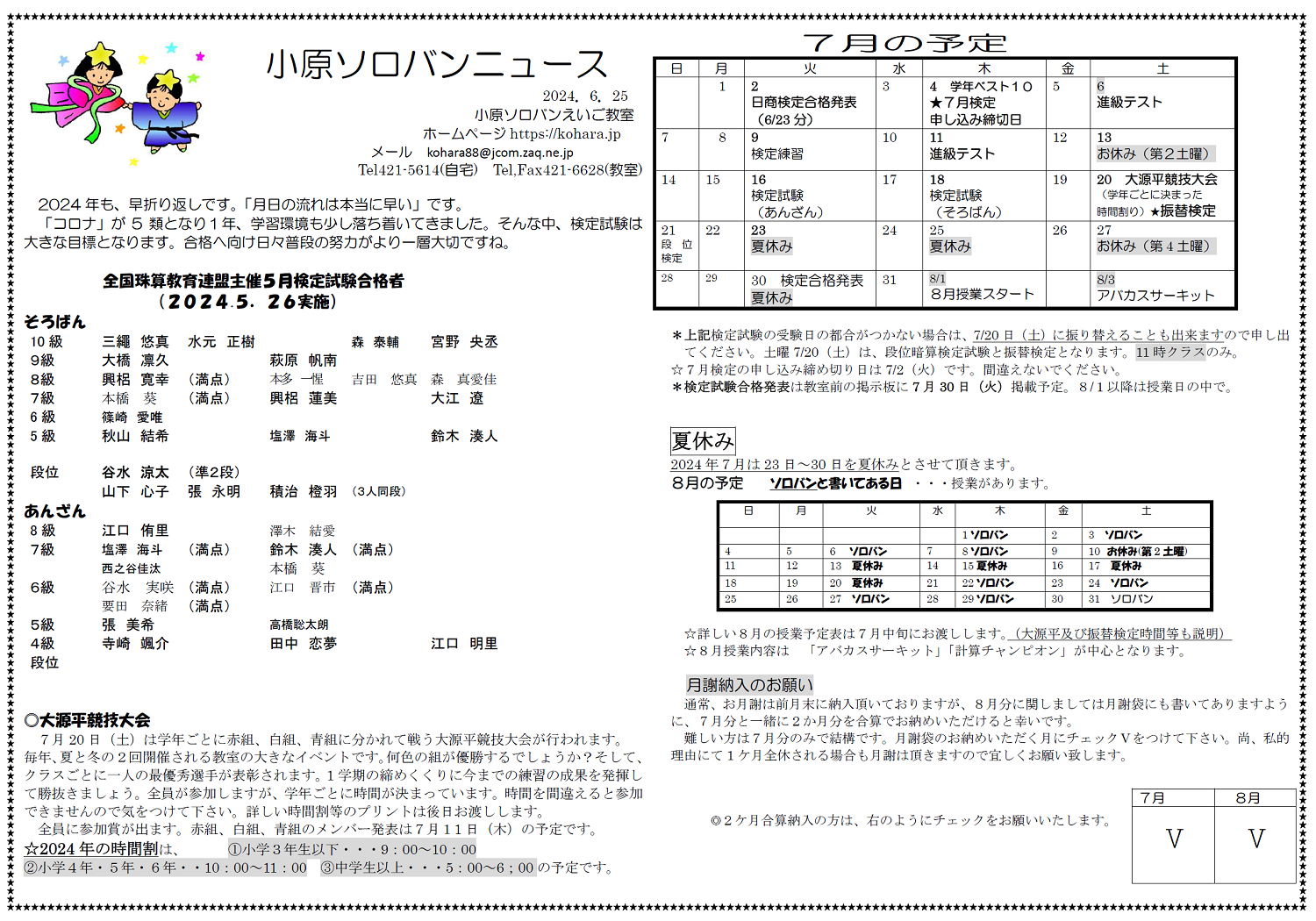 小原ソロバンニュース 2024年7月号