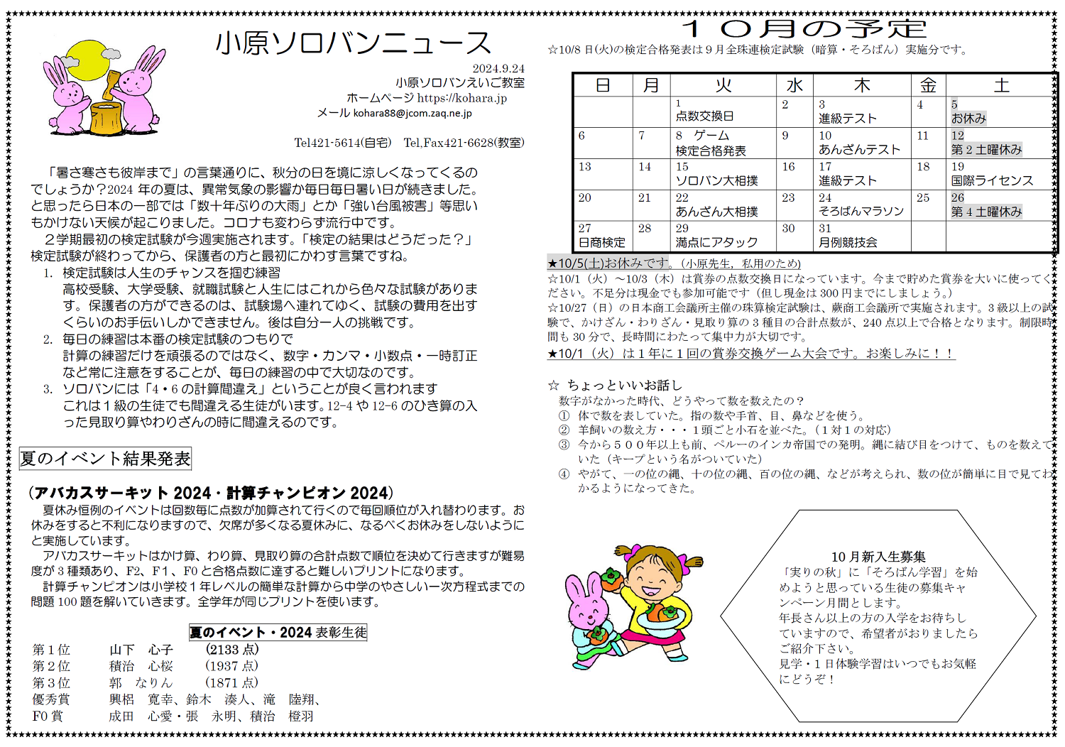 小原ソロバンニュース 2024年10月号