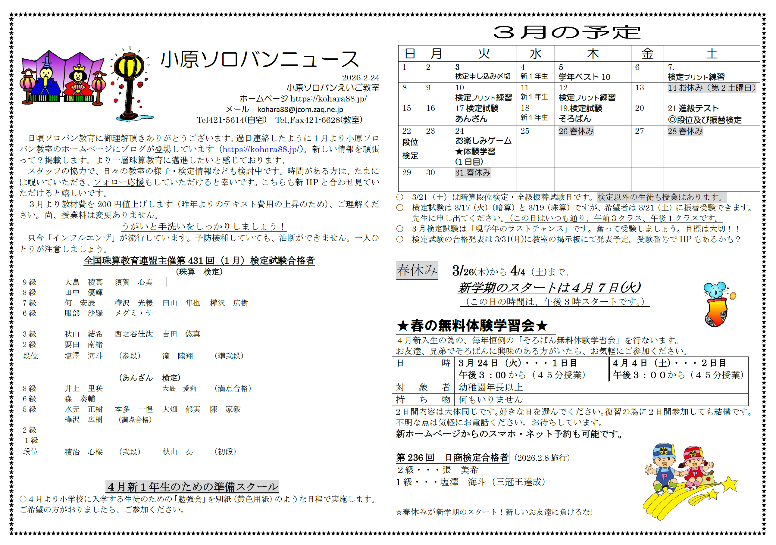小原ソロバンニュース 2026年3月号